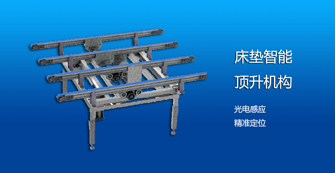The mattress is fed into the equipment by the roller line, and is precisely positioned by the photoelectric. The motor pulls the entire tooling to stack and position up and down, and the timing belt and the roller line are relatively reversed to realize the whole mattress stacking.