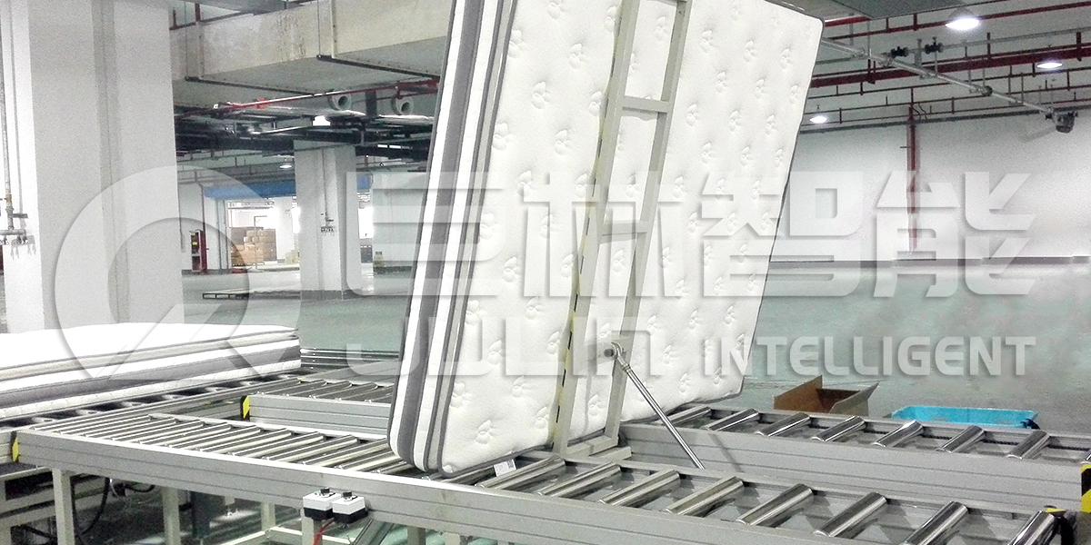 Julin Intelligent can customize various non-standard mattress equipment. The mattress automatic rotation and turning table is used together with the roller line to save manpower. Intelligent dust-free automatic turning improves production efficiency and product quality.